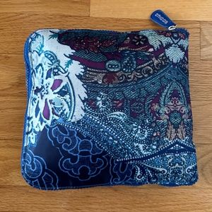 Chico's Packable Tote Blue Paisley. Very lightweight and is the perfect travel companion. Tote folds into itself and becomes 8"x8". Durable 100% polyester fabric that is washable, or wipe clean. Dual blue handles. Sturdy top zipper. Interior has a side zip pouch. Excellent new condition.