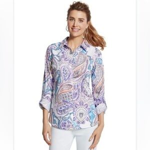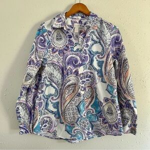 🦋 Chico’s Paisley Colorful Button Down Long Sleeve Blouse Size 1 US Medium 8