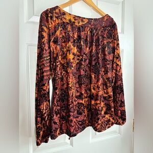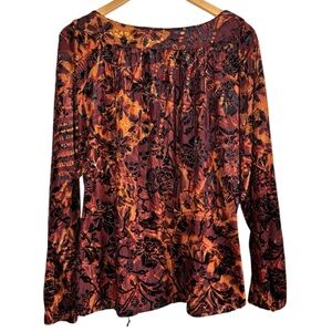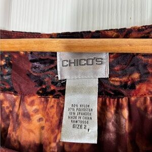 Chico's Paisley Floral Burnout Velvet Blouse Top 2 Large Brown Dark Romantic