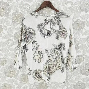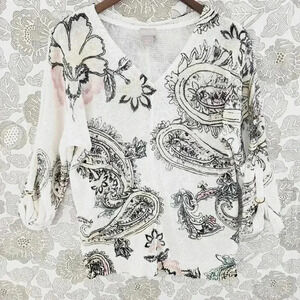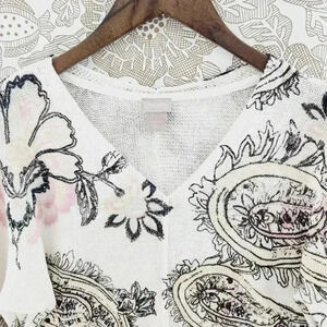 Chico's Paisley Knit Sweater Women's 1/ M V neck Tab sleeve