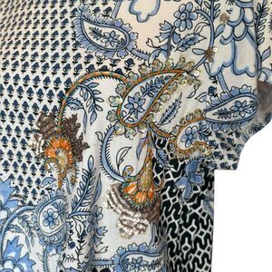 Chicos Paisley Sequin Embellished Tee Shirt Top Cotton Modal Womens Size Large