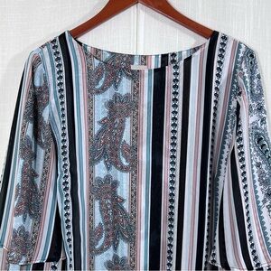 Chicos Paisley Tiered Sleeve Lace Hem Blouse Top Size L