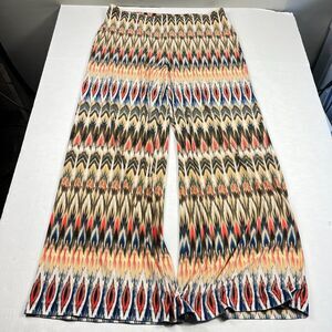 Chicos Palazzo Pull On Lounge Pants Abstract Ikat Print Flowy Stretchy 2 LARGE