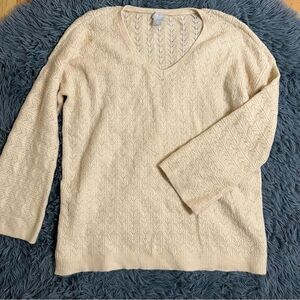 Chico's Pale Dogwood Cable Knit V-Neck Sweater Size L NWOT