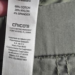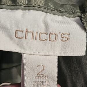 Chico's Womens Crop Nylon Stretch Green Cargo Utility Pants Pull On Roll Tab