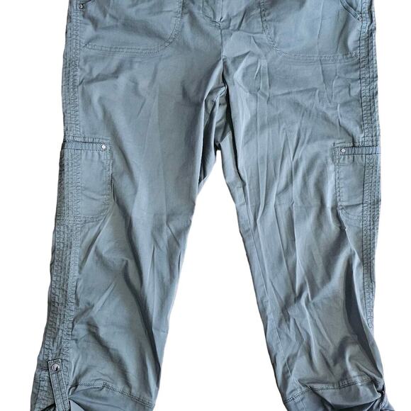 Chico's Womens Crop Nylon Stretch Green Cargo Utility Pants Pull On Roll Tab