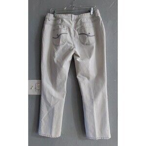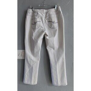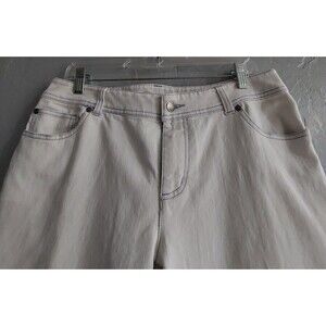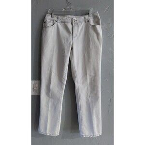 Elevate your wardrobe with these stylish Chico's pants. These pants feature a classic fit with a straight leg style and a flat front design. The pants are made from a comfortable spandex and cotton blend fabric and come in a beautiful white color.