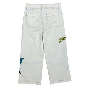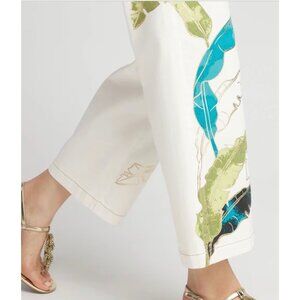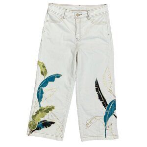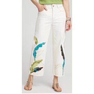 Chicos Pants Size 8 Tropical Wide Leg Cropped Ivory Trouser Jeans