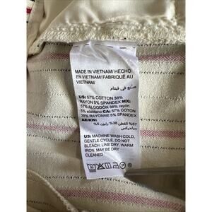 Chico's Pants Size XL Cream Red Stripe 24" Crop Stretch Cotton Zip Career Work