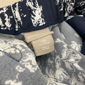 Chico’s Pants Travel Novelty Print Pull On Elastic Waist US Size 4 navy/ white