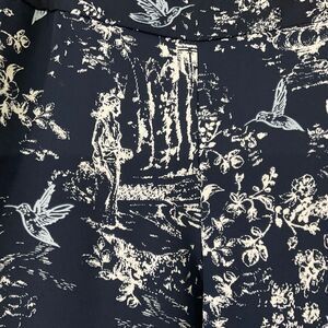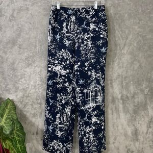 Chicos Pants Travel Novelty Print birds Pull On Elastic Waist US Size 4 navy/ white