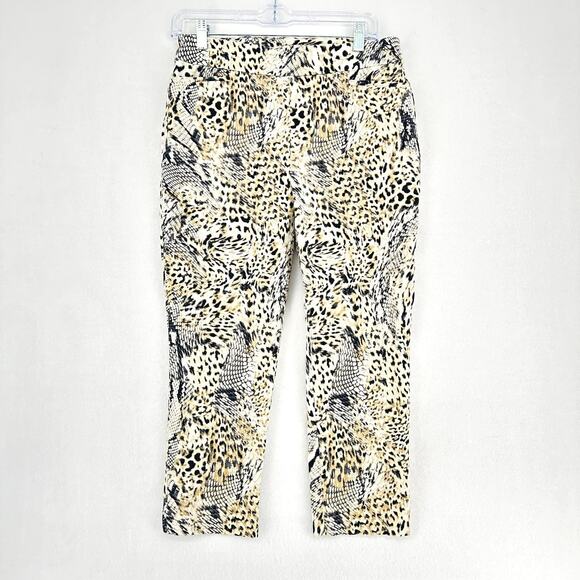 Chico's Pants Women Size 8 Multicolor Slim Fit Stretch Leopard Print 60 Rayon