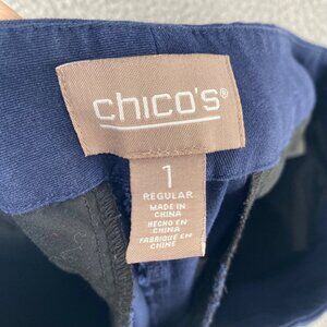 Chicos Pants Womens 1 US 8 Navy Fabulously Slimming 4 Way Stretch Trouser Pocket