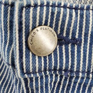 Chicos Pants Womens 1.5 US 10 Blue Striped Platinum Skimmer Distressed Casual
