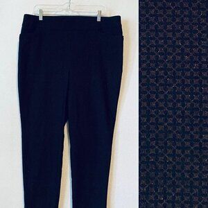 Chicos Pants Womens 16 Black Ponte Knit Red Metallic Geometric Print Stretch