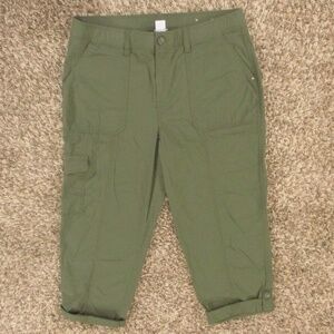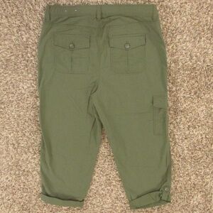 Chico's Pants Women's 2 Green Cargo Straight Leg Crop Stretch Utility Roll Up
