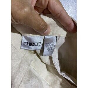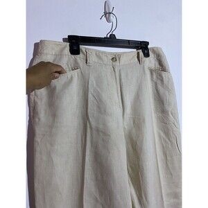 Chicos Pants Womens 3 Linen Beige Beach Coastal Travel Resort Wide Leg