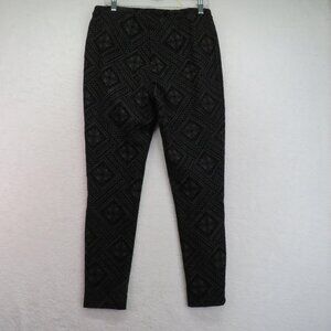Chicos Pants Womens Med Black Gray Textured Damask Slim Tuxedo Stretch Pull On