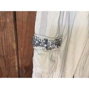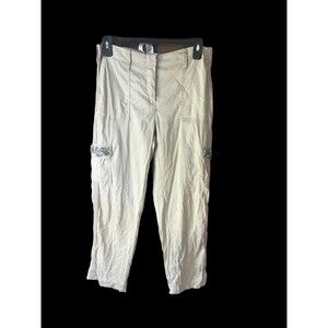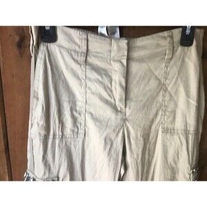 Chico's Pants Womens Size 00 Tan Linen Blend Rhinestones Pockets