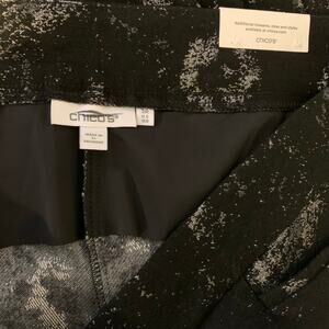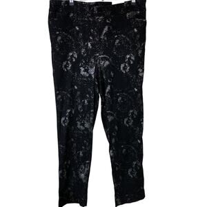 Chicos Pants Womens Size 3 Brigitte Slim Leg Pull-On Jacquard Metallic Ankle NWT