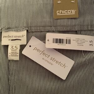 Chico's Pants Women's Size 3.5 Perfect Stretch Josie Cannes Stripe Snap Hem NWT