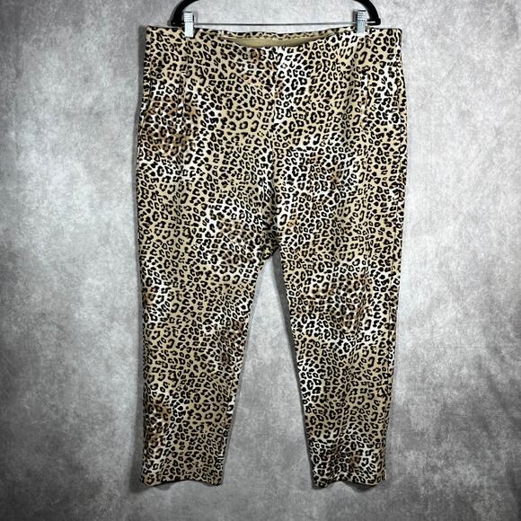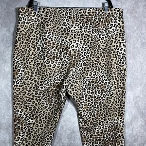 Chico's Pants Womens Size 4 US 20 Tan Leopard Print Pull On Ankle High Rise