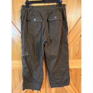 Chicos Pants Womens Small 1 Brown Cargo Pocket Cropped Flat Front Casual elastic in waist measurements 29” waist 22” inseam 10.5” rise (3098)