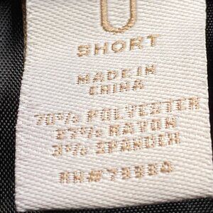 Black dress pants, designed for a polished and professional look. Short size, comfortable fit with a blend of polyester, rayon, and spandex. Chico's size 0 equals a US size small/4.