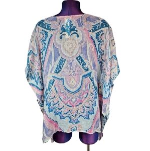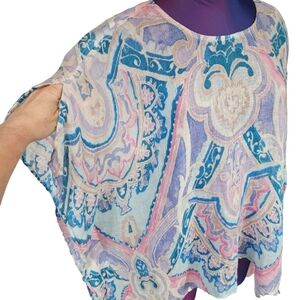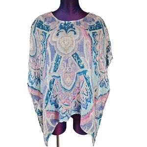 Chico's Pastel Ikat Linen Poncho Watercolor Kaftan Size S/M Women's I17