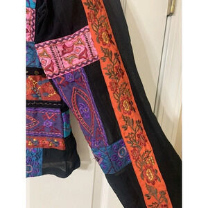 Chico’s Patchwork Embroidered Boho Wearable Art Jacket Size 1 Or Medium 8 (F5)