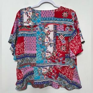 Chicos Patchwork Floral Paisley Peplum Flutter Sleeve Button Up Blouse