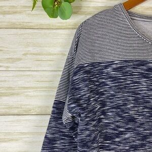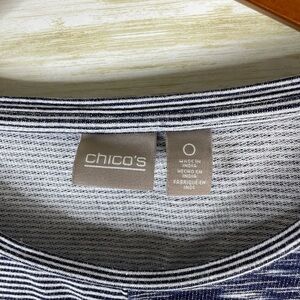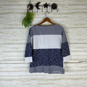 Chico’s Patchwork Striped Colorblock 3/4 Sleeve Tee