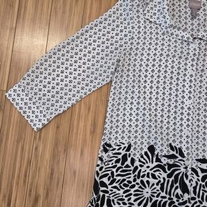 Stylish black and white blouse with intricate patterns. Perfect for any occasion. In great condition.