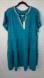 Chico's Peacock Blue 100% Linen w Embellished Neckline Glam Relaxed Short Dress