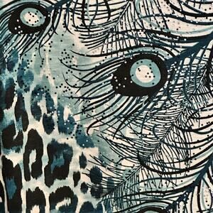Chicos Peacock Feather Top Size 3 (Womens XL) Teal Sparkle Art to Wear Knit Tee