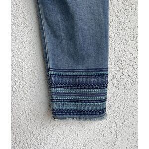 Chico’s Perfect Stretch Girlfriend Embroidered Fray Ankle Jeans- 1.5/ US 10-blue