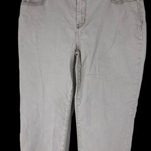 Chicos Perfect Stretch Girlfriend Slim Leg Ankle Jeans Beige SZ 14