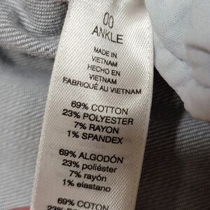 Chico's Perfect Stretch Girlfriend Slim Leg Grey Damask Print Pants - Size 00. Excellent condition. Comes from a smoke free home.