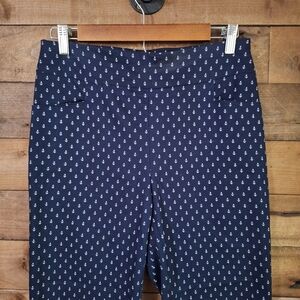 Chico’s Perfect Stretch Navy Ankle Pants with Anchor Print | Size 1 (US 8 Medium)