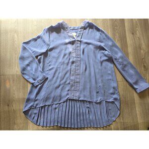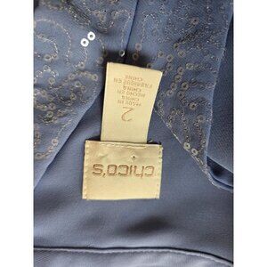 Chicos Periwinkle Blue Pleated Back Blouse Tenni Sequin Trim Size 2 L