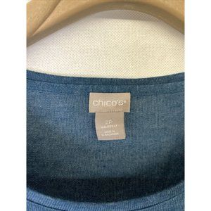 Chico's Petite 3/4-Sleeve Side-Slit Tunic LP 2P Plus Sz 2 Blue Knit tee blouse