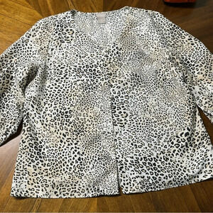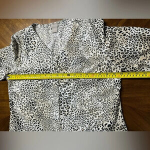 This is a listing for a preowned Chicos Petite Animal-Print Tie-Sleeve Button Top Size 1 US Med 8/10 Cheetah. Great condition, minimal wear, approximate measurements in photos. Please see all photos for details as they are part of the description.