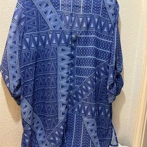 Chico's Petite Blue Mixed Print Silver Sequin Embellished Tunic Top