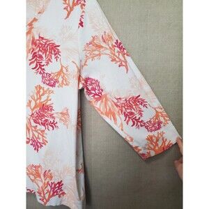 Chico's Pima Cotton Coral Print V-Neck 3/4 Sleeve T-Shirt Sie 4 (XXL)