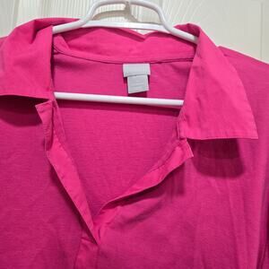 Chico’s Pima Cotton Pink Collared Split Neck Top Size XXL