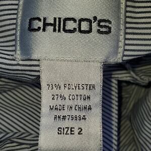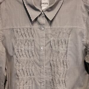 Chico's Pin Striped Button Down Tunic Ruching Shirt Size 2