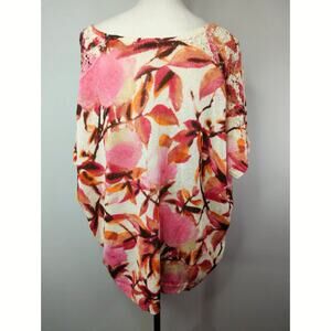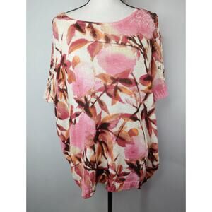 Chicos Pink Floral Cherry Blossom Blouse Women's X- Large Netting Spring Summer