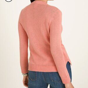 Chico's salmon pink cardigan with 3 pearly buttons and eyelet open knit details on hem and cuffs.