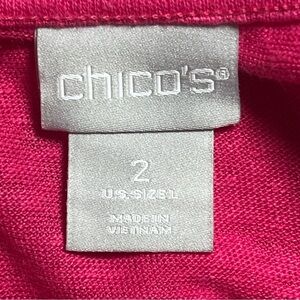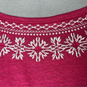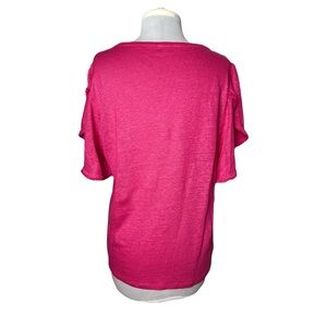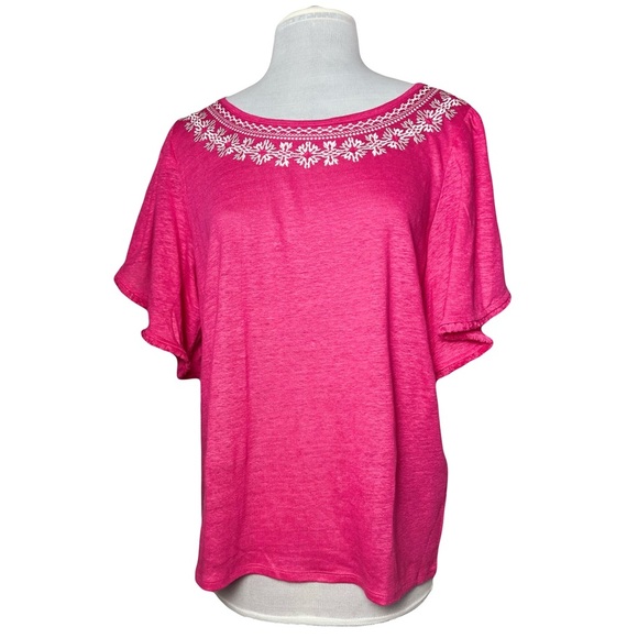 Chico’s | Pink Linen Embroidered Fringe Flutter Sleeve Top, Size 2 (Large)