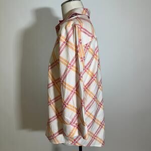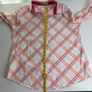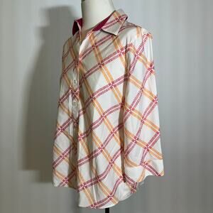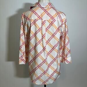 Chico's Pink Orange Diamond Plaid Button Up Blouse No Iron